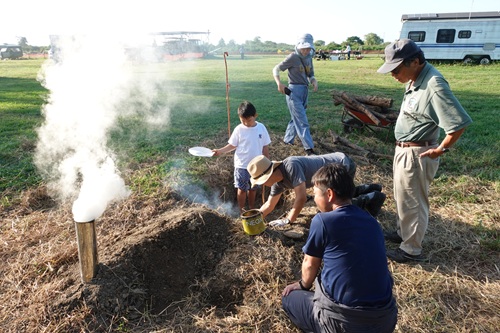 飛行場周辺で刈り込んだ枝木を材料に炭作りを始めてます。